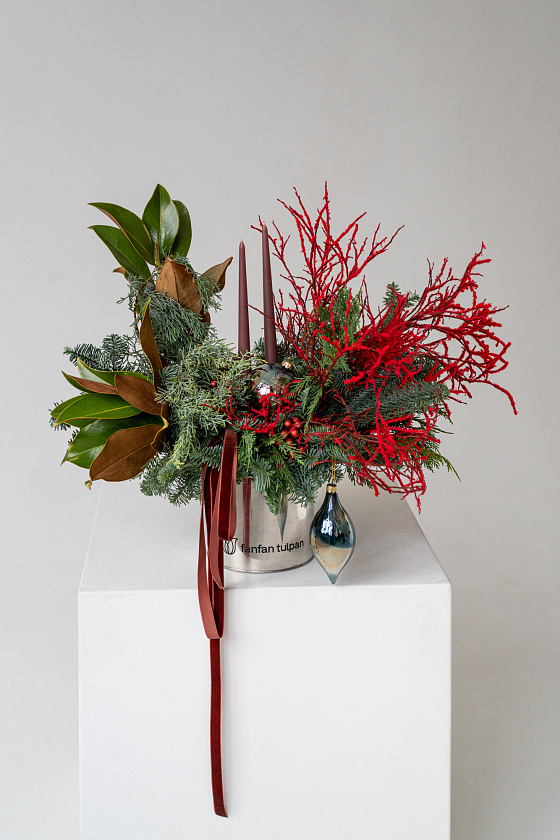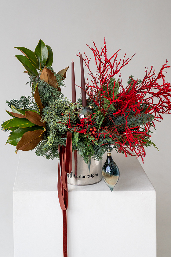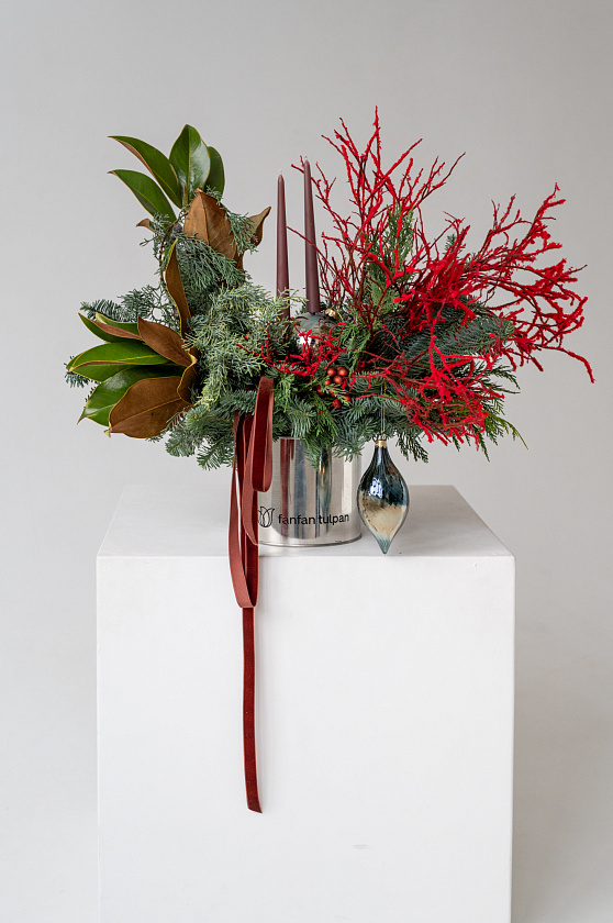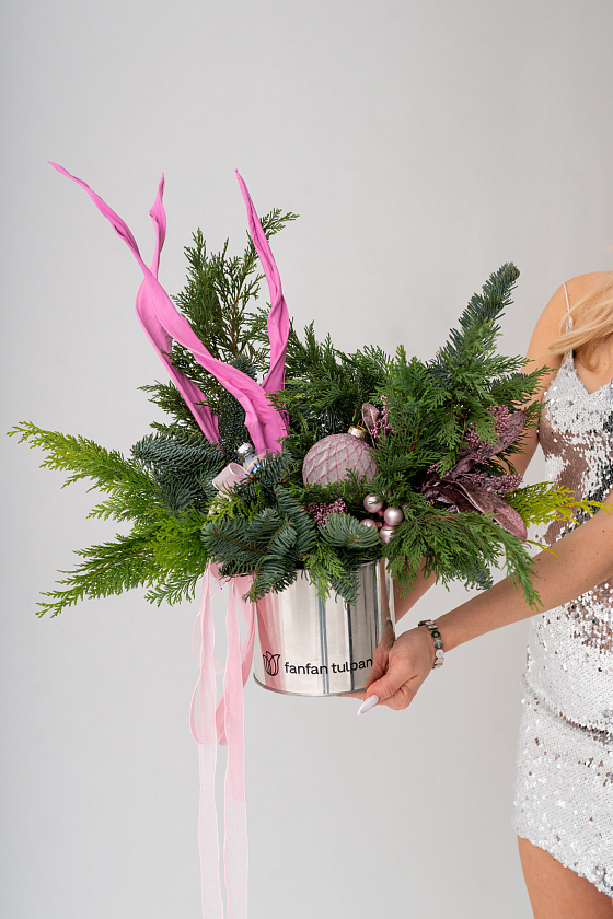 - Привозим композиции формата L в одноразовых емкостях с водой и защитных боксах.
