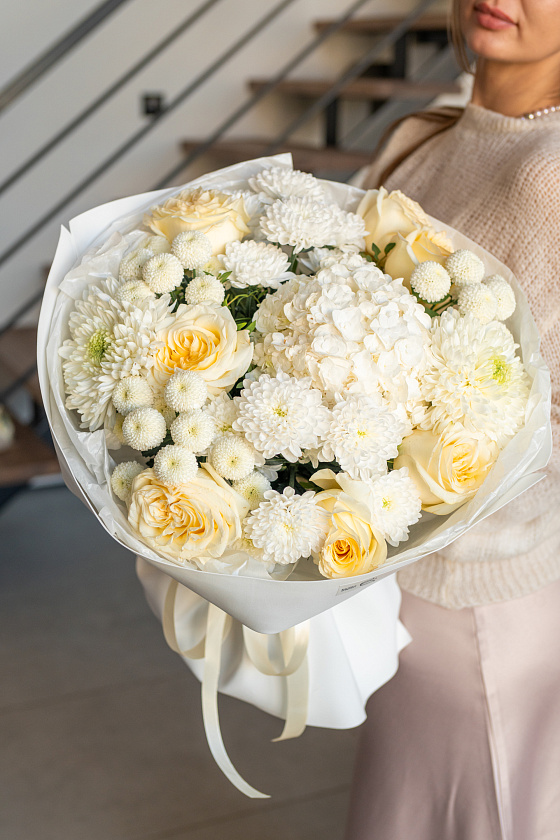 На стоимость композиции влияет упаковка, сорта, количество цветов, присутствие зелени или декоративных элементов. Цены располагаются под каждым товаром на сайте.