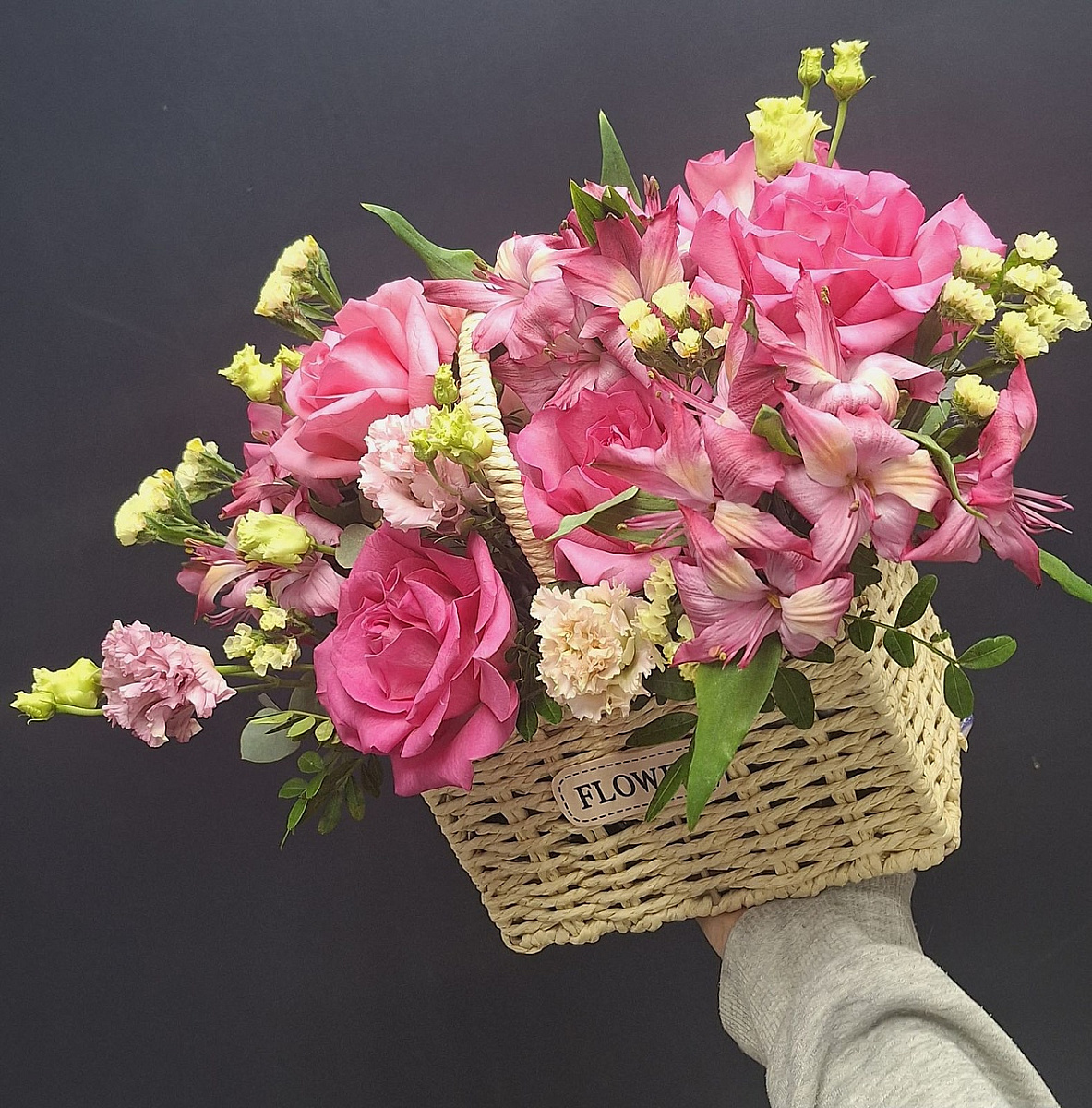 Данная цветочная композиция под запрос. Это значит что возможно у нас отсутствует какой-либо цветок в составе букета. Но мы готовы собрать похожую композицию, не чуть не менее красивую чем эта. Вы можете оставить заявку. И мы свяжемся с вами и предложим возможные варианты.