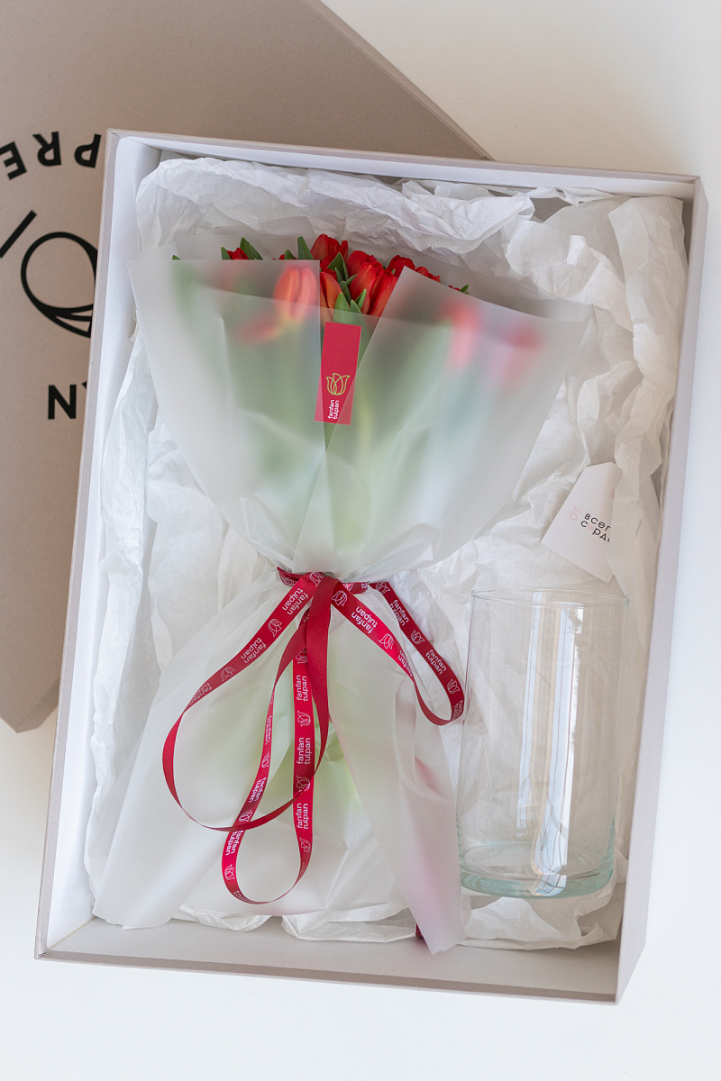 элегантная ваза из прозрачного стекла, подчёркивающая нежность бутонов