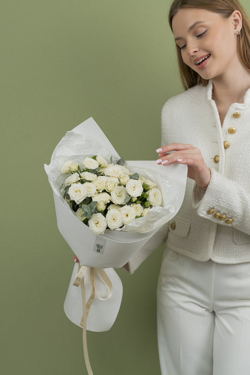 Букет из кустовых роз - это прекрасный подарок для любого случая, будь то день рождения, свадьба или просто выражение благодарности.Такой букет будет радовать вас своей красотой и ароматом на протяжении длительного времени.Дарите кустовые розы и делитесь красотой с любимыми людьми!