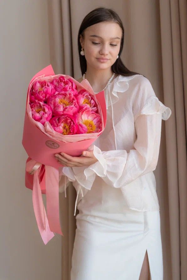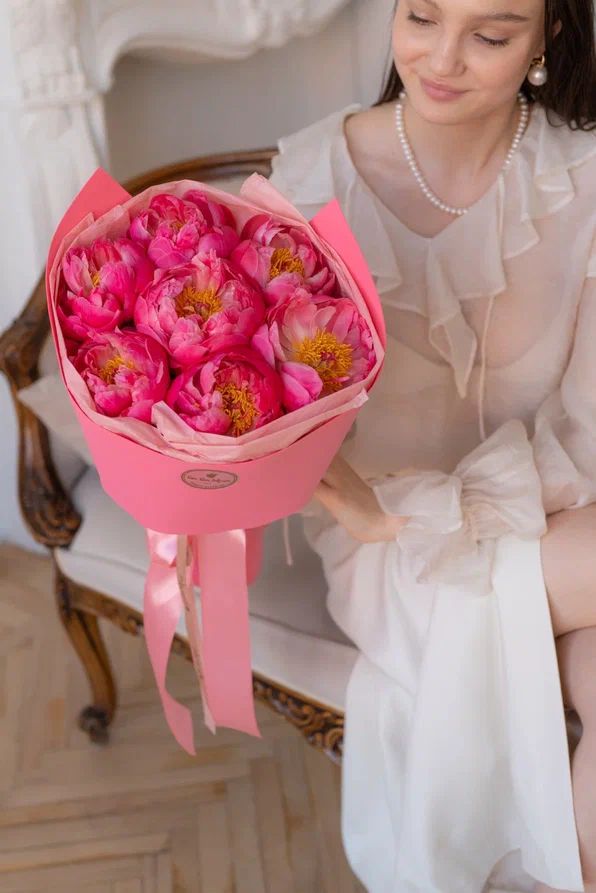 Букет из пионов – это не просто собрание красивых цветов, но настоящий шедевр, который создает настроение и поднимает дух. Каждый пион имеет свою уникальную форму и оттенок, что добавляет букету изящности и разнообразия.