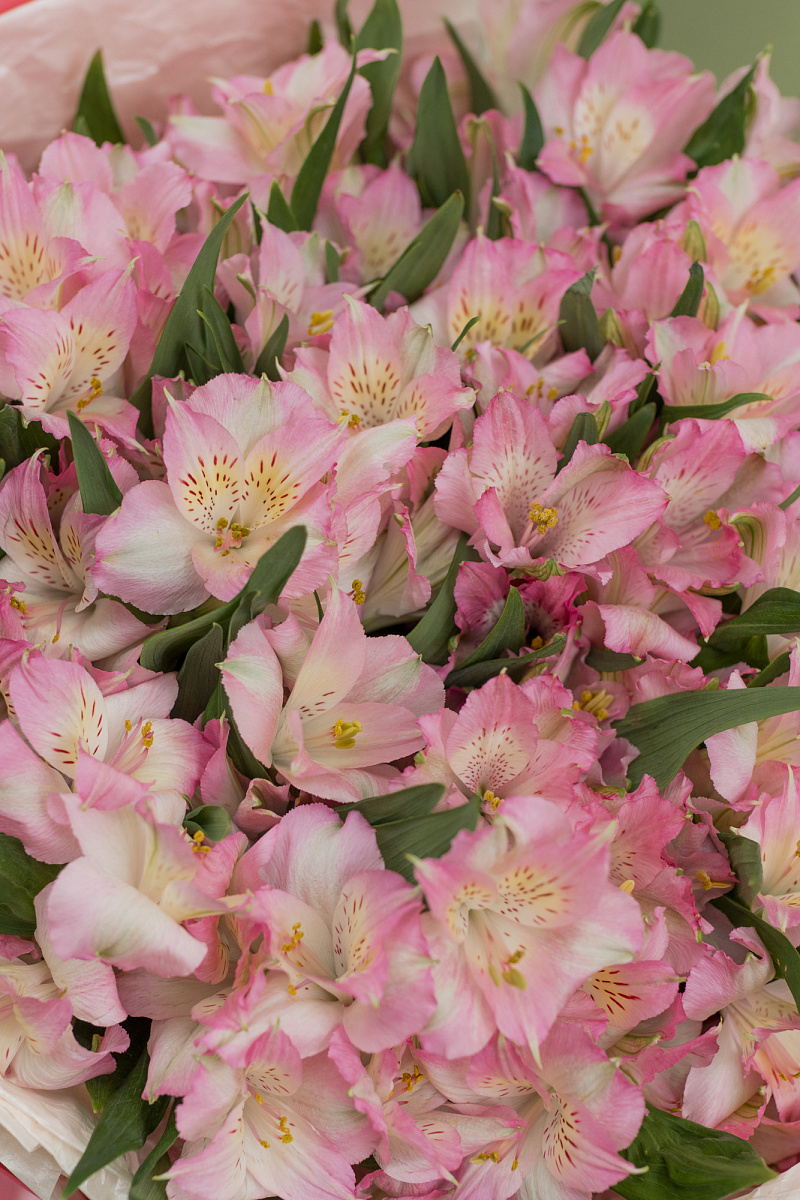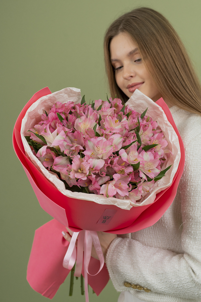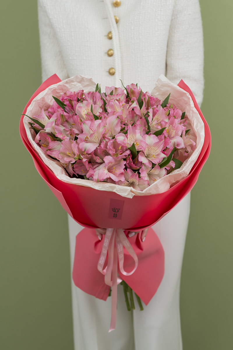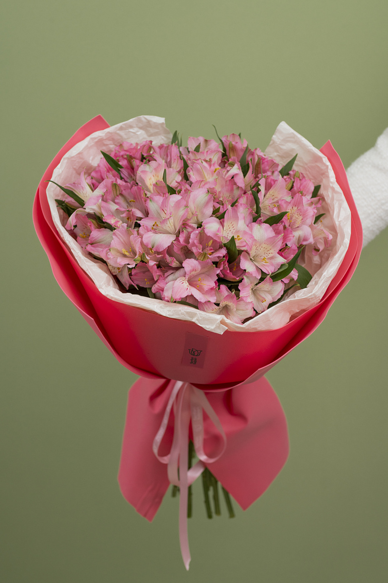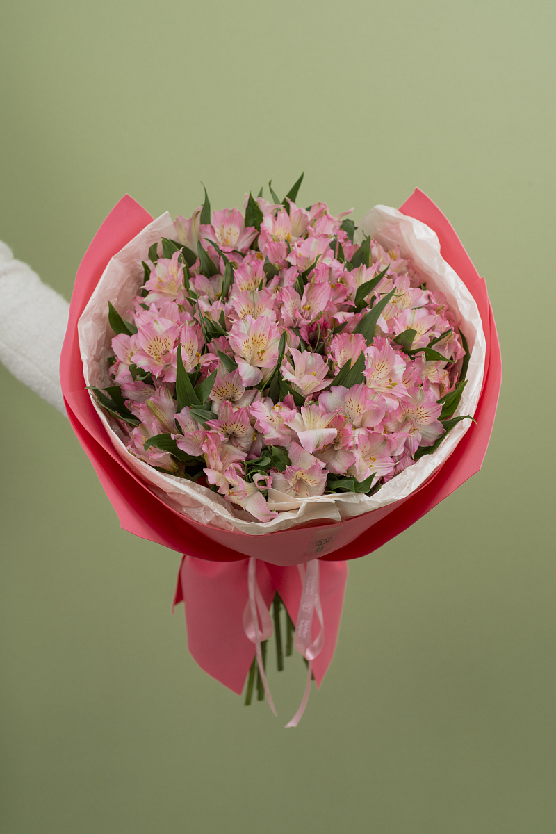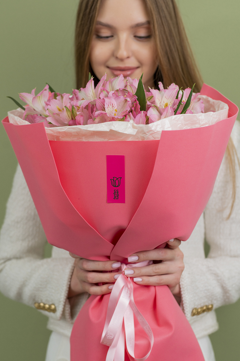 Букет из альстромерий – изысканное сочетание нежности и элегантности. Эти прекрасные цветы поражают своей изящностью и олицетворяют любовь, красоту и романтику.Каждая альстромерия в этом букете – настоящий шедевр природы. Их стройные стебли украшены крупными, густо расположенными соцветиями из нежных лепестков. Причудливые формы цветов и их тонкая текстура захватывают взгляд, создавая ощущение легкости и воздушности.
