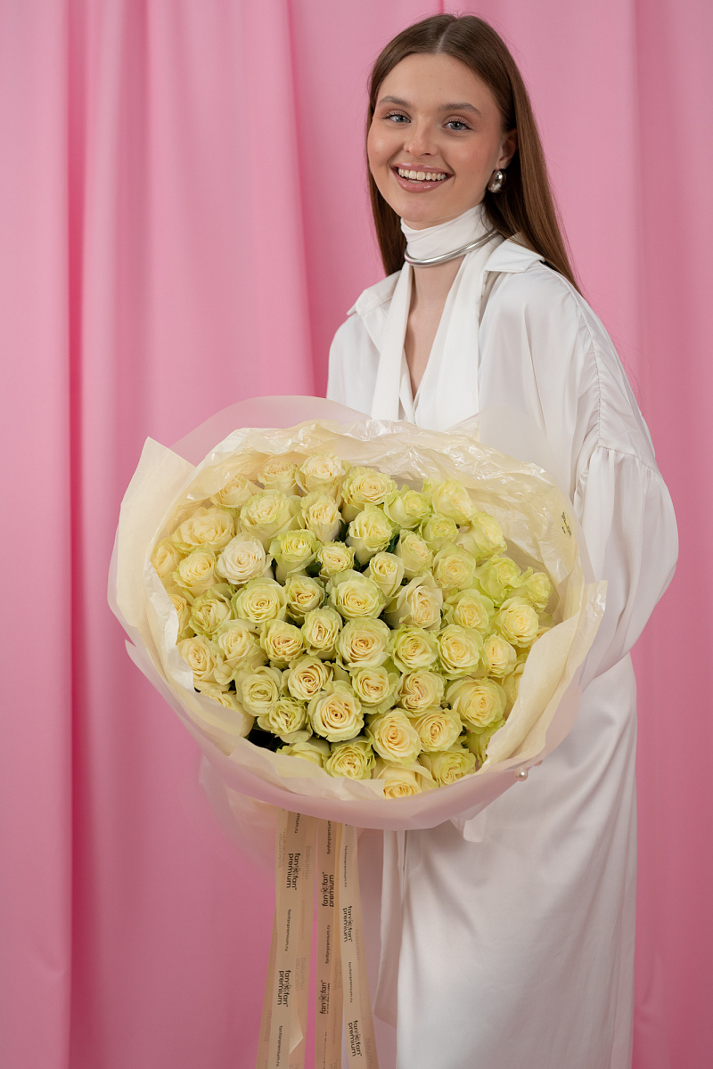 ПРЕМИУМ Букет Aqua из роз - это великолепное сочетание красоты и величия. Он поражает своими размерами и изысканным ароматом, который наполняет воздух нежностью и романтикой.