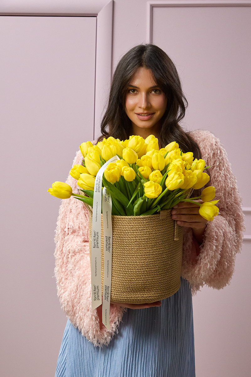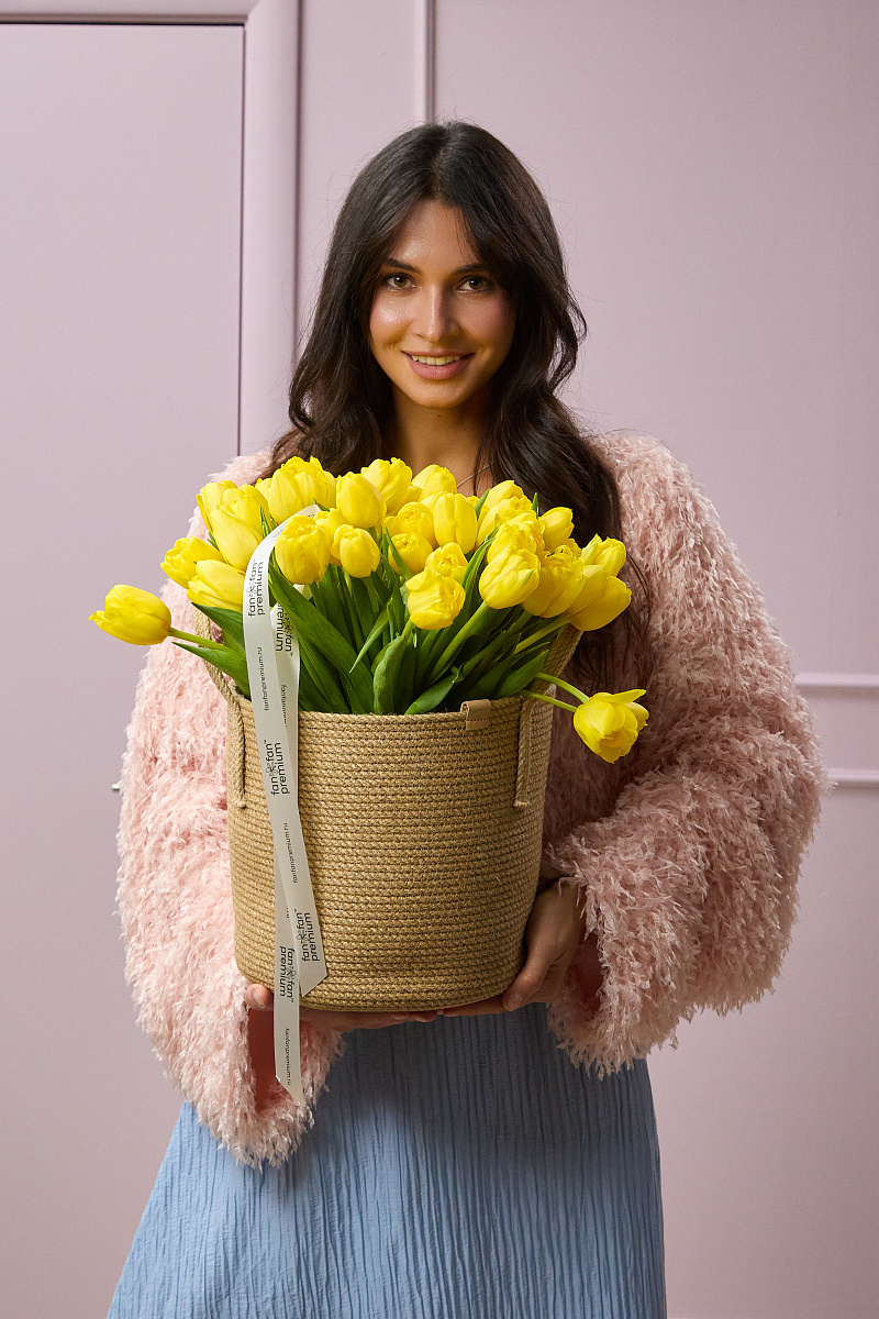 Утончённая цветочная композиция в плетёном кашпо, где природная фактура и нежные тюльпаны создают образ воздушной лёгкости и изысканной простоты. Это решение для тех, кто ценит деликатную эстетику и стремится привнести в пространство ноту умиротворения.