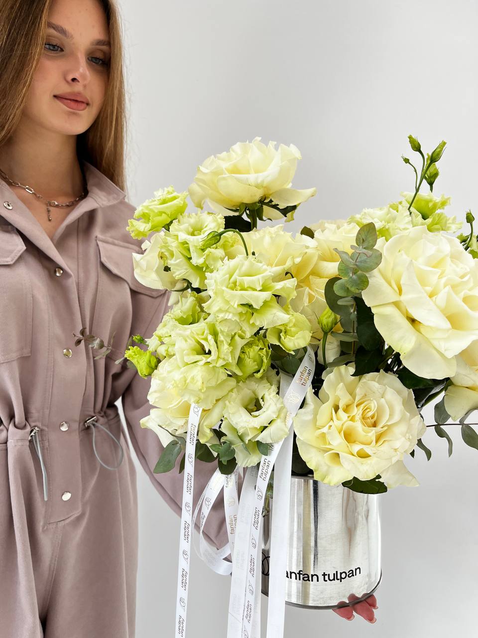 Данная цветочная композиция под запрос. Это значит что возможно у нас отсутствует какой-либо цветок в составе букета. Но мы готовы собрать похожую композицию, не чуть не менее красивую чем эта. Вы можете оставить заявку. И мы свяжемся с вами и предложим возможные варианты.