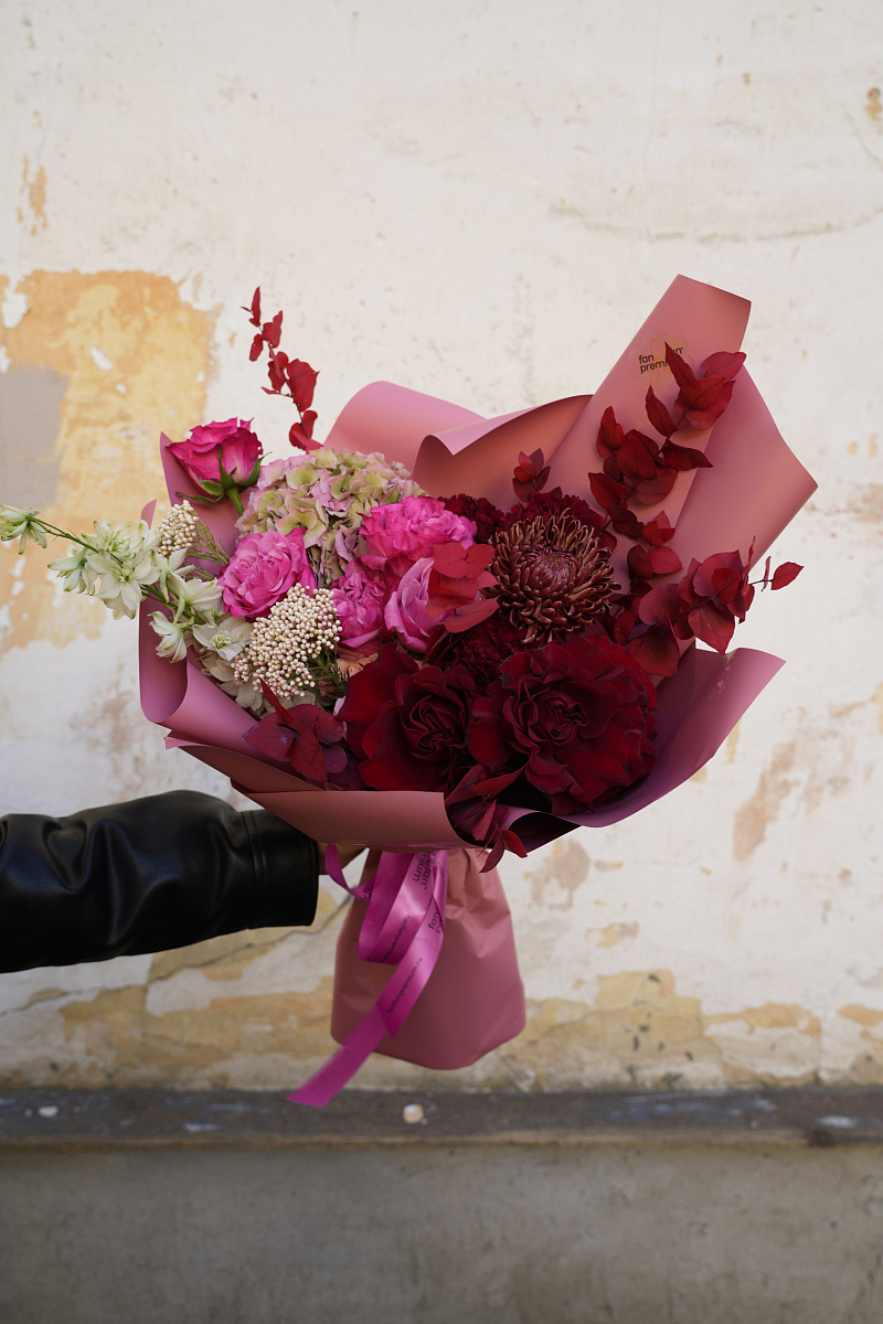 Данная цветочная композиция под запрос. Это значит что возможно у нас отсутствует какой-либо цветок в составе букета. Но мы готовы собрать похожую композицию, не чуть не менее красивую чем эта. Вы можете оставить заявку. И мы свяжемся с вами и предложим возможные варианты.