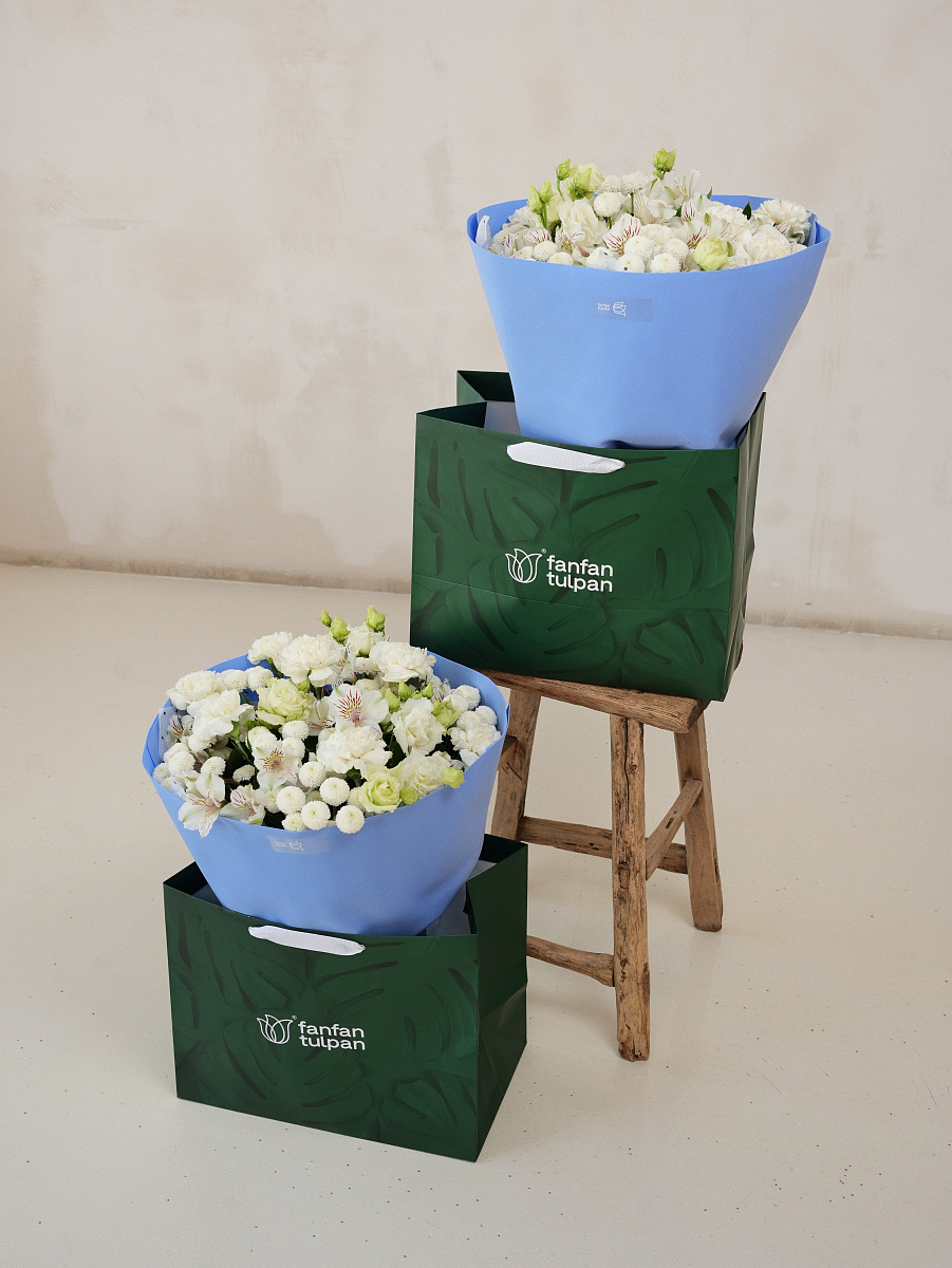 *Букеты размера M и L доставляются в Аквабоксе и Фирменном пакете