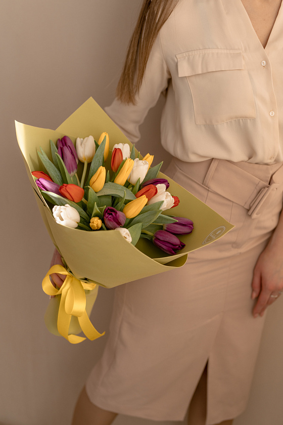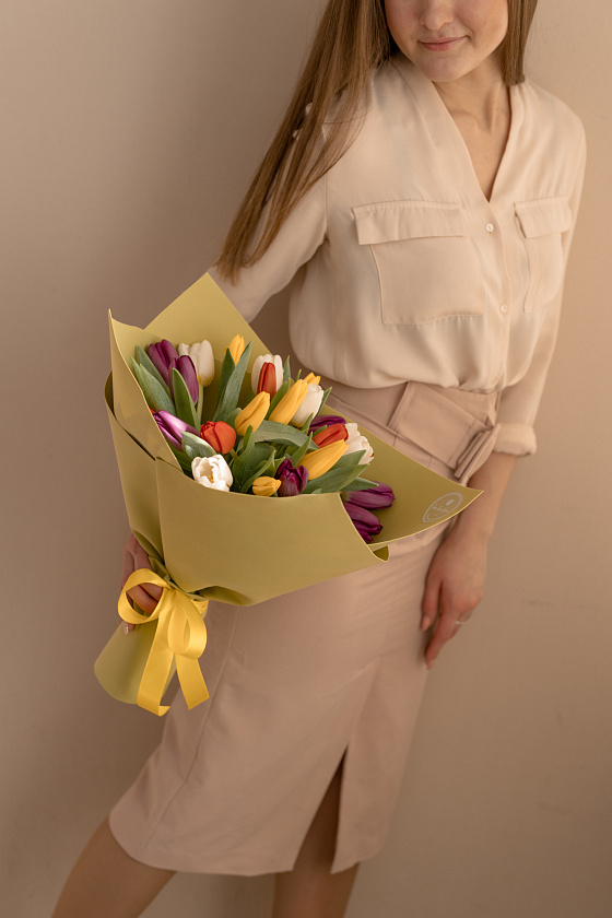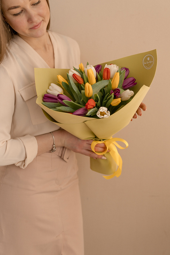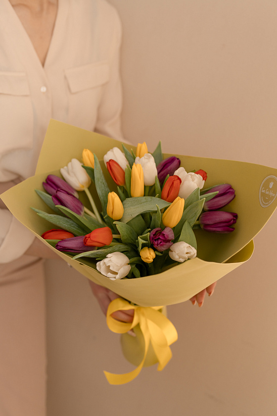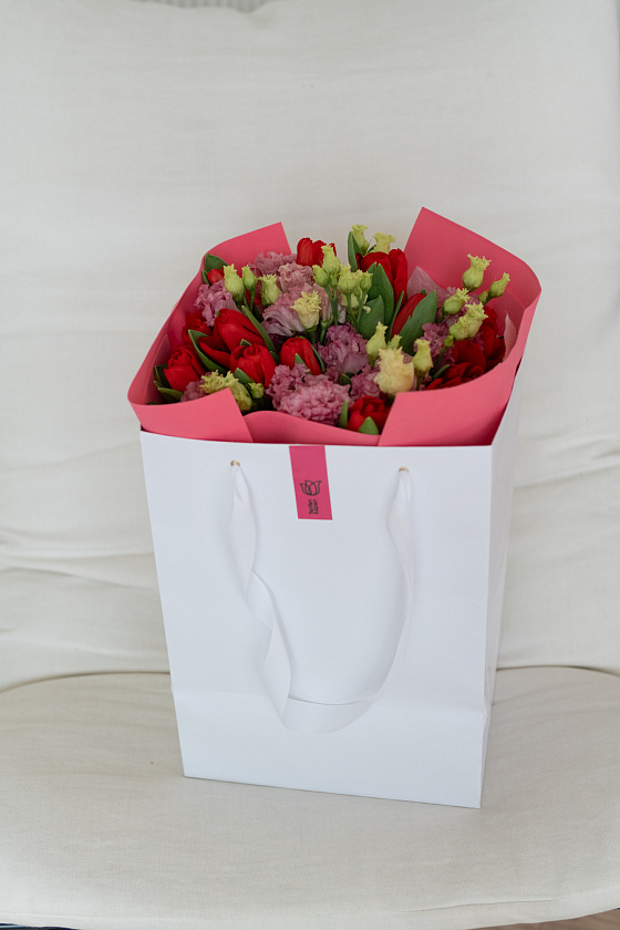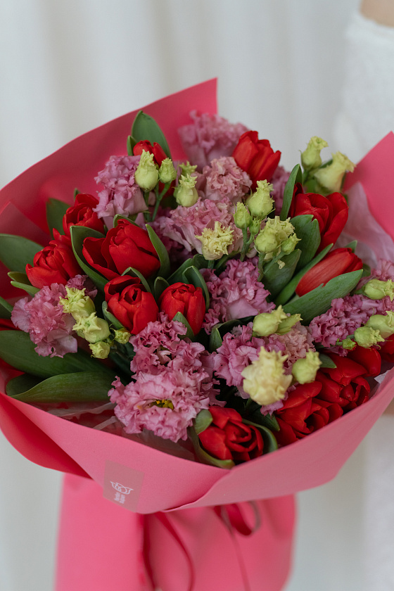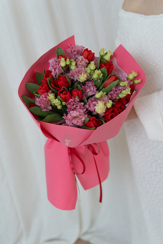 Букет с тюльпанами и эустомой Взаимная Любовь