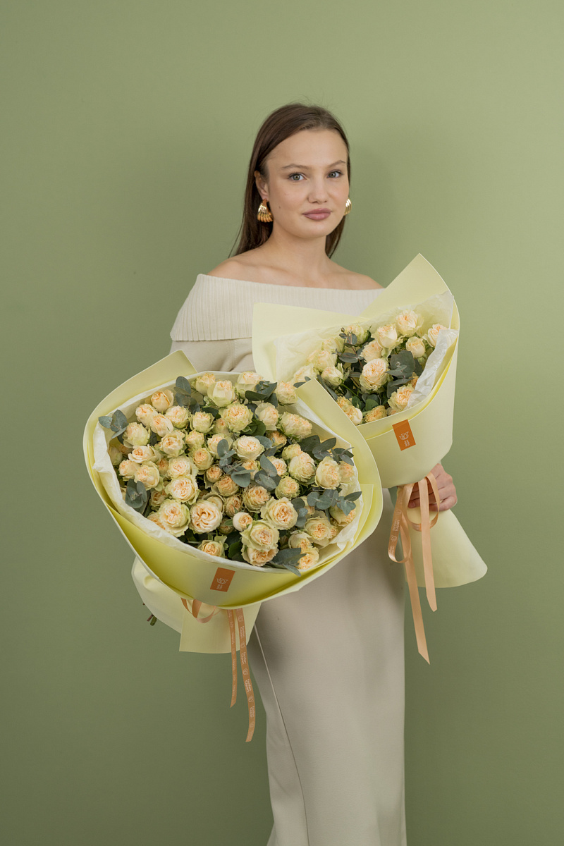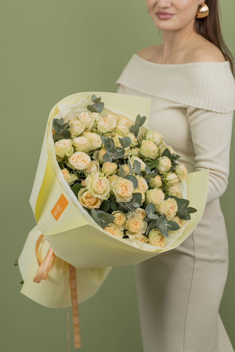 Букет из кустовых роз - это прекрасный подарок для любого случая, будь то день рождения, свадьба или просто выражение благодарности.Такой букет будет радовать вас своей красотой и ароматом на протяжении длительного времени.Дарите кустовые розы и делитесь красотой с любимыми людьми!