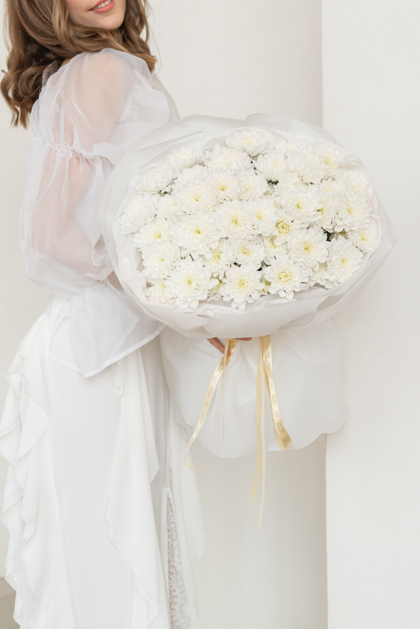 Букет размера M и L доставляется в транспортировочном комплекте: "аквабокс + транспортировочная коробка-трапеция" или "аквабокс+фирменный пакет".