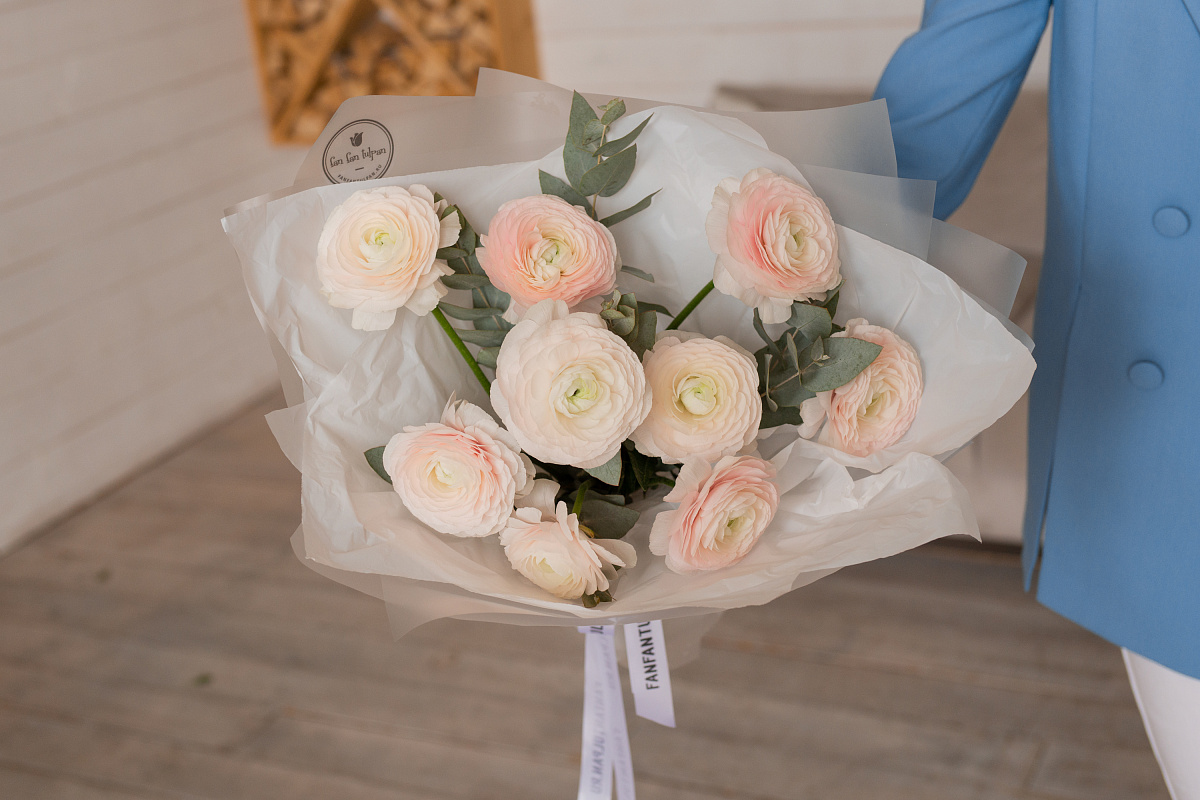 Букет из ранункулюсов - это яркое и элегантное произведение природы, которое способно восхитить своей прекрасной красотой и изящностью. Ранункулюсы - это цветы, пропитанные символическим значением, которое отражает нежность, любовь, очарование и чувственность.