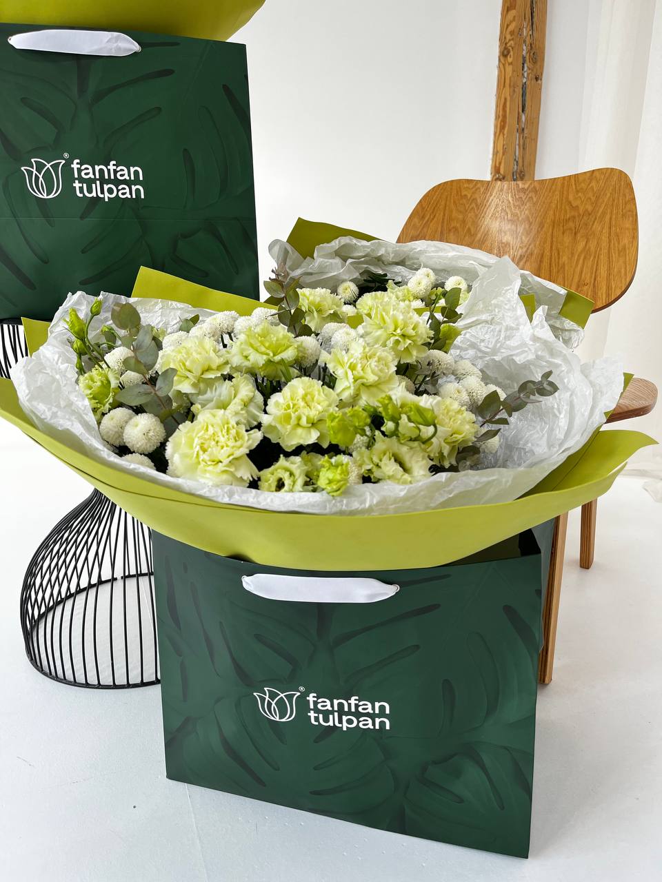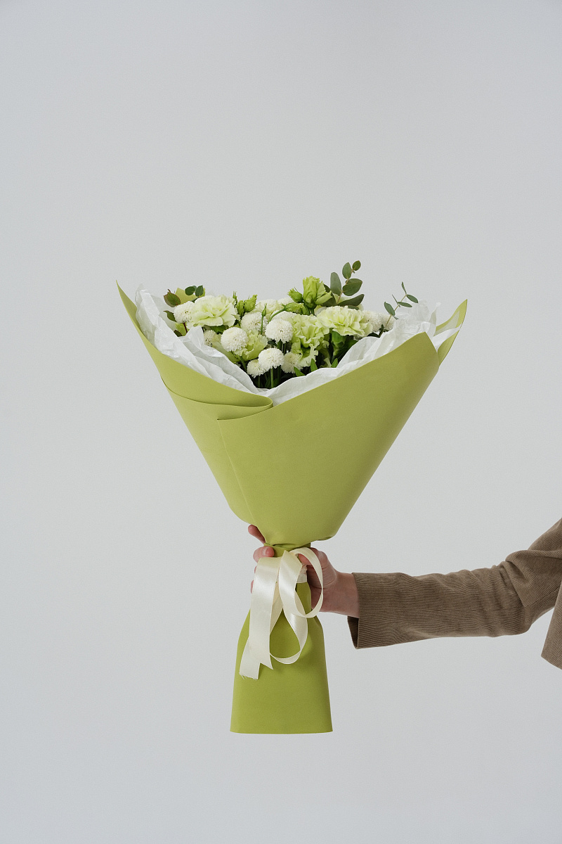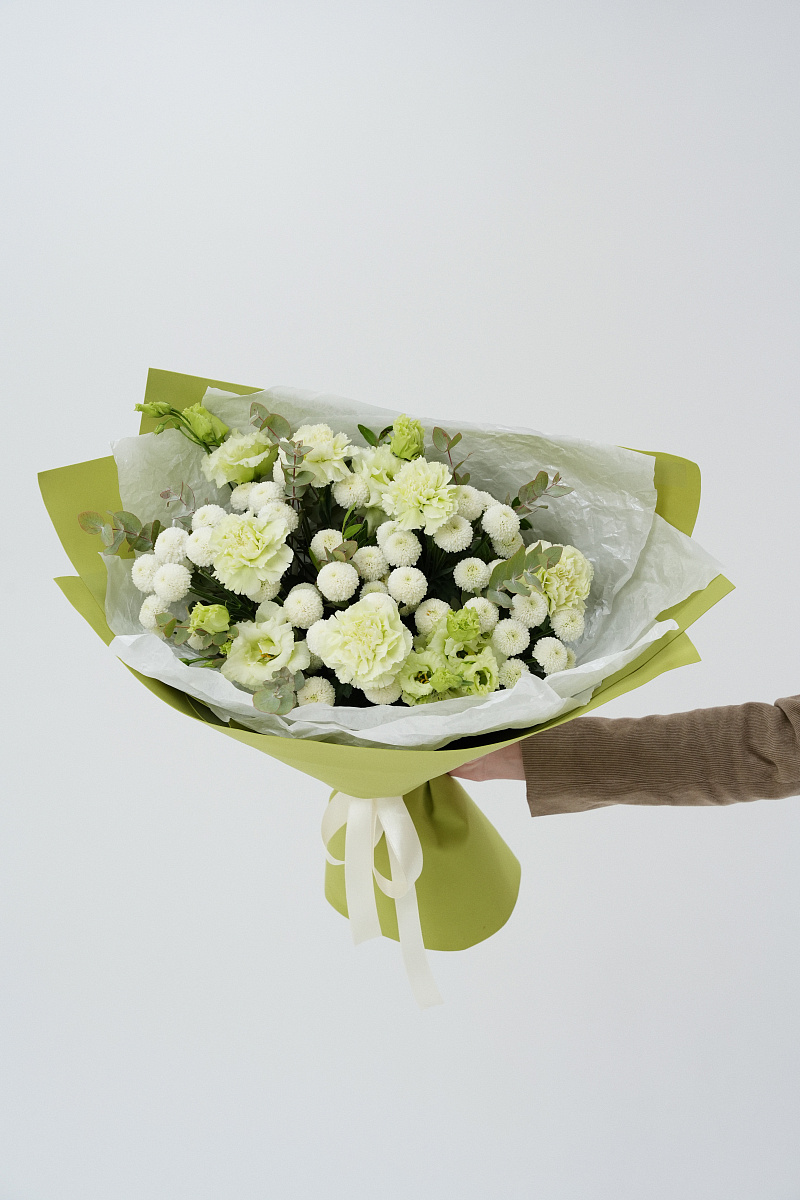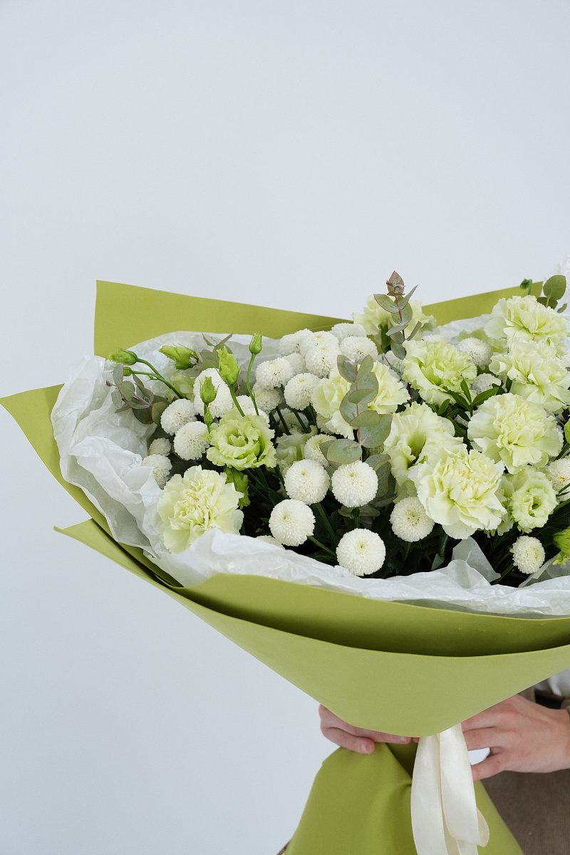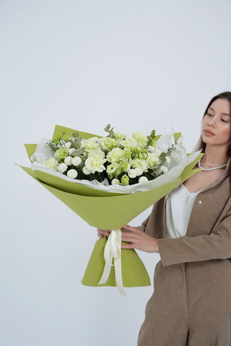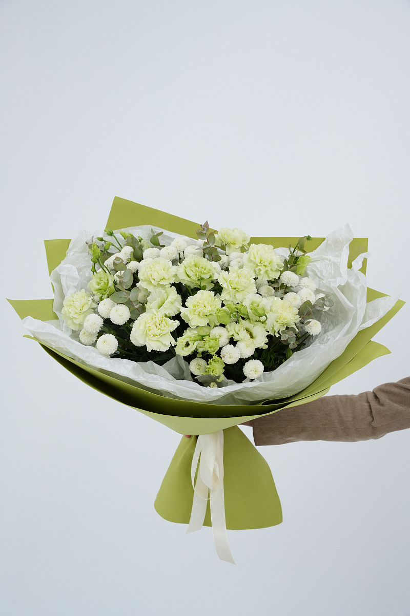 Букет с зелеными гвоздиками — это уникальное сочетание природы и элегантности. Зеленые гвоздики привлекают внимание своим необычным цветом, вызывая ассоциации с весной, свежестью и обновлением. Они выглядят оригинально и современно, гармонично вписываясь в любые интерьеры и стиль оформления. Такие цветы подойдут для тех, кто ценит индивидуальность и стремится выделяться среди толпы.