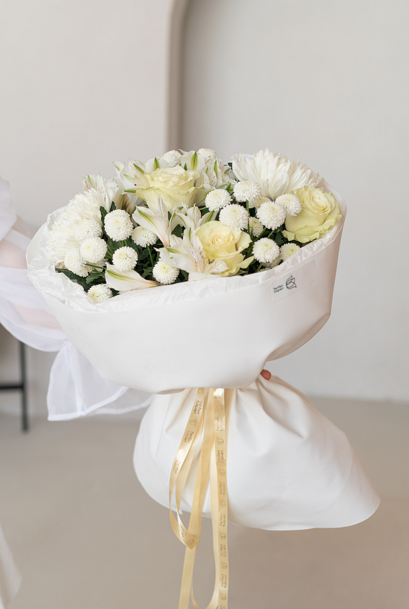 Этот сборный букет — не просто композиция из цветов, а искреннее послание, которое говорит больше, чем любые слова. Тщательно подобранные оттенки и формы создают гармоничное сочетание, способное передать самые тонкие оттенки чувств: от трепетной нежности до глубокого восхищения.