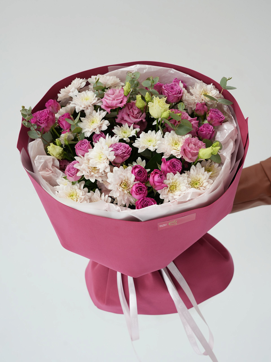 Роза кустовая ,Хризантема кустовая ,Эустома ,Эвкалипт