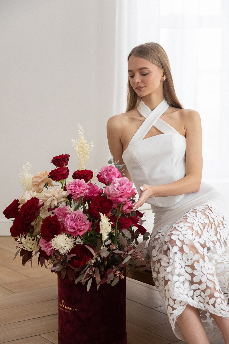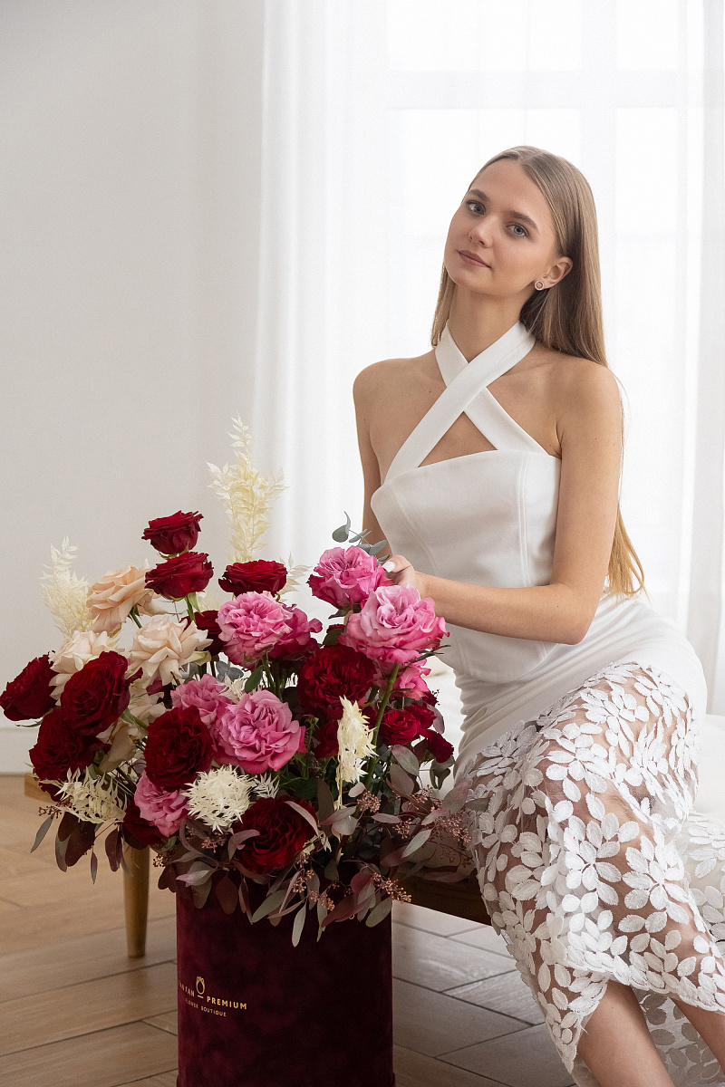 Каждый букет или цветочная композиция ПРЕМИУМ по-своему уникальны, индивидуальны и неповторимы. Ведь цветы – это живой организм. Они могут отличаться степенью раскрытия бутона, размером и пышностью цветка, оттенком и даже формой. Цветы в букете также могут быть заменены на аналоги при отсутствии необходимого цветка в хорошем качестве , при этом мы  оставляем состав, форму, цветовую гамму и общую стилистику.