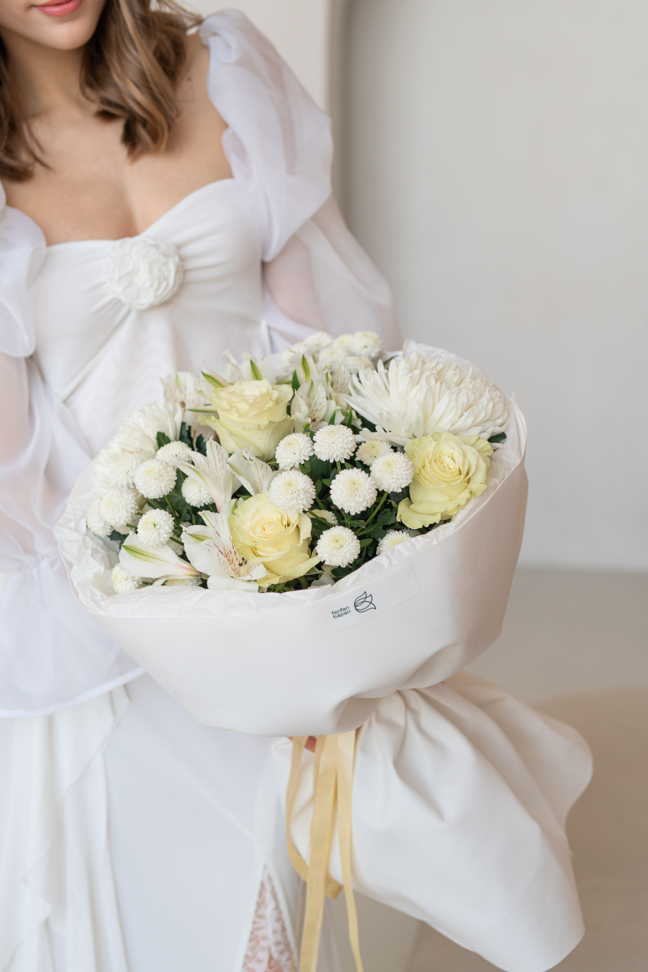 Кустовая хризантема – одно из самых популярных и универсальных растений, используемых в создании букетов и композиций. Этот красивый цветок поражает своим разнообразием оттенков и форм, что делает ее незаменимой для создания ярких и эффектных композиций. Букеты из кустовой хризантемы прекрасно дополняют интерьеры, придавая им особый шарм и индивидуальность. Букет доставляется в транспортировочной коробке - трапеции.