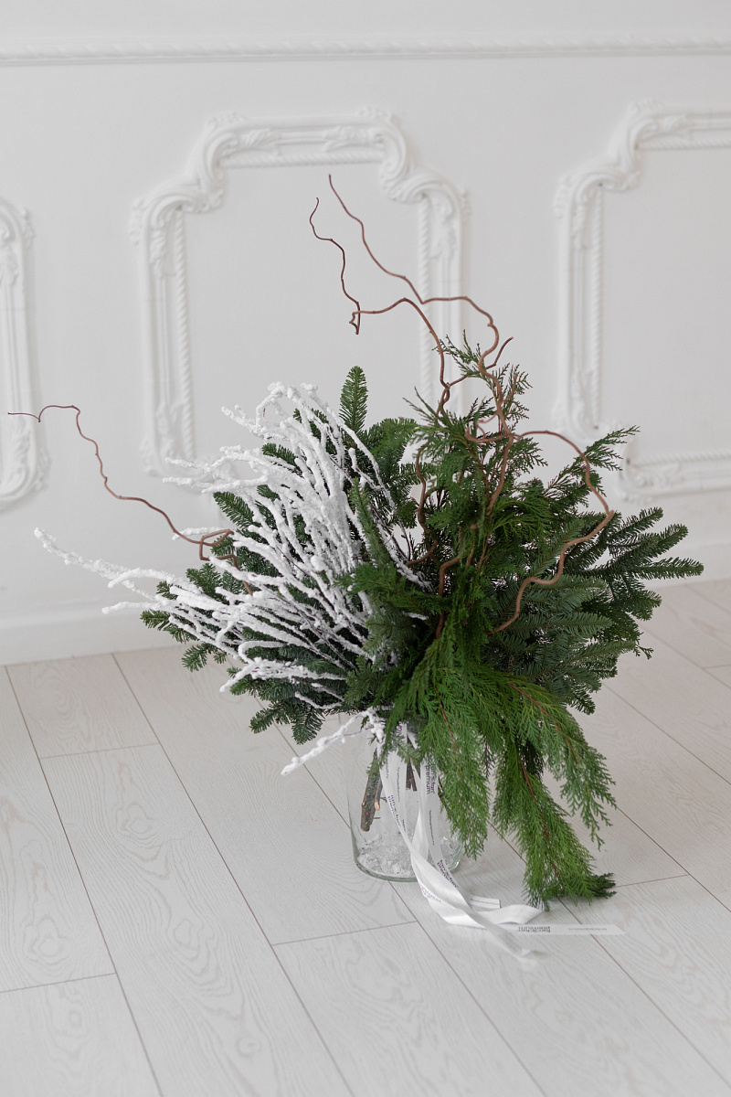 Каждая ветка, окутанная снежной пудрой, словно живая скульптура, созданная искусным мастером природы. Их изогнутые формы и причудливые очертания создают гармонию и нежность в эту холодную пору, а зеленый нобилис придает атмосферу приближающего волшебного праздника!