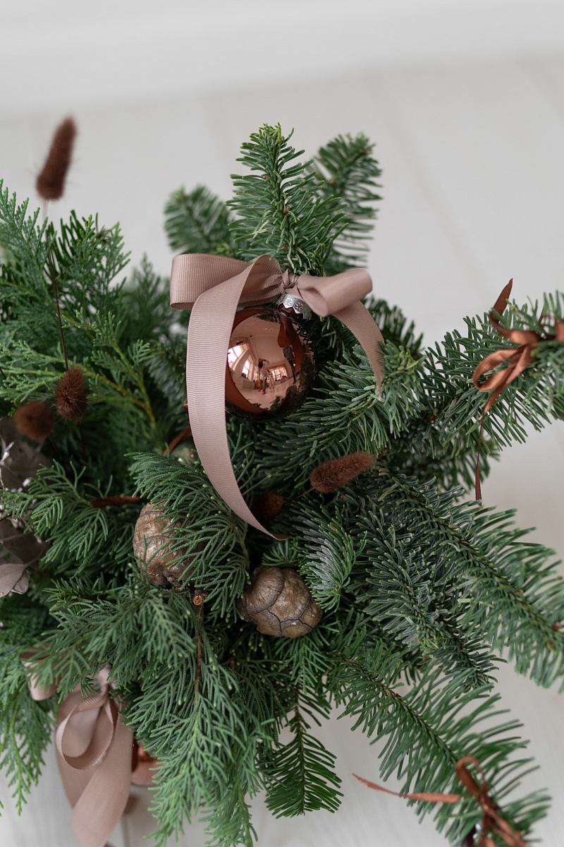 Такое искусное сочетание свежести нобилиса и праздничных деталей станет не только украшением вашего интерьера, но и символом уюта, надежды и радости в это волшебное время года.