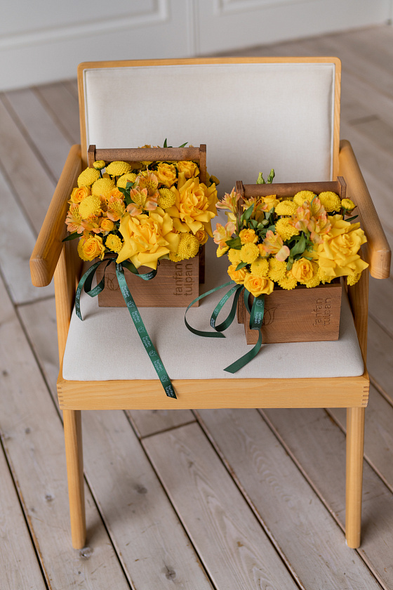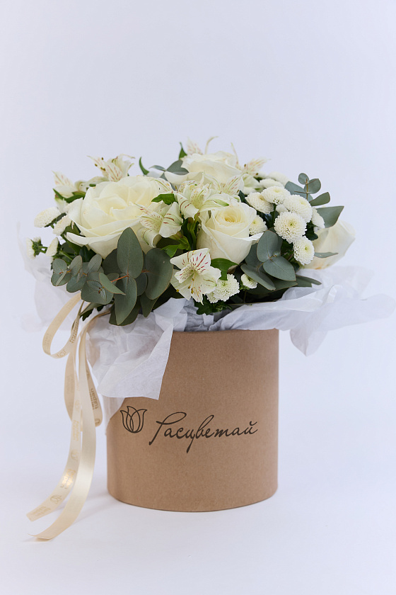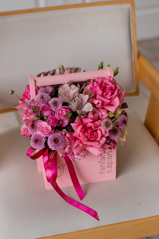 Собираем изысканные моно- и микс-композиции в корзинах, крафте, ящиках и шляпных коробках.