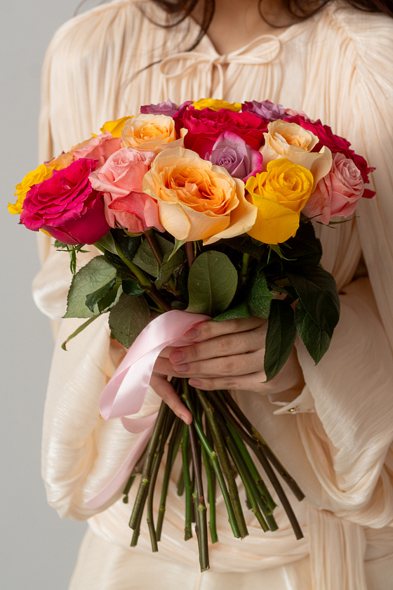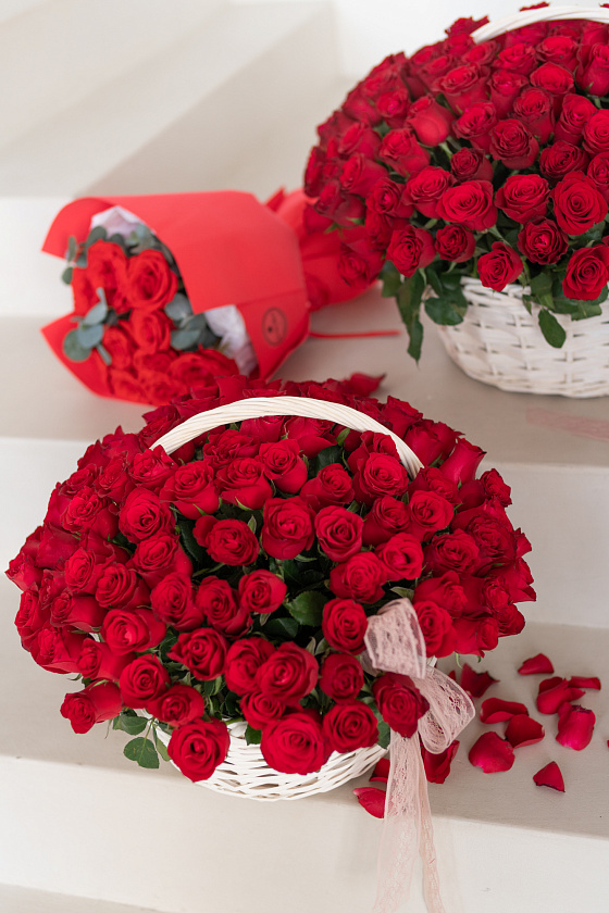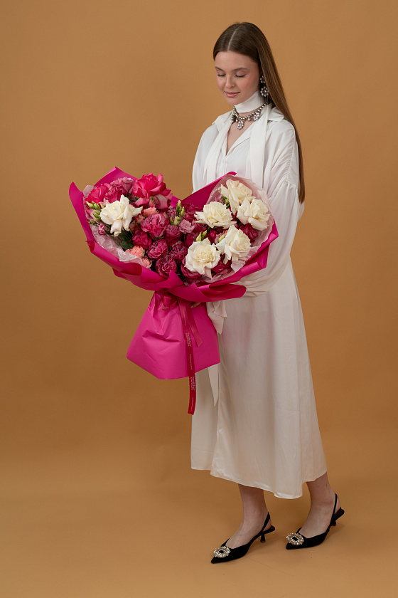 На стоимость композиции влияет упаковка, сорта, количество цветов, присутствие зелени или декоративных элементов. Цены располагаются под каждым товаром на сайте.